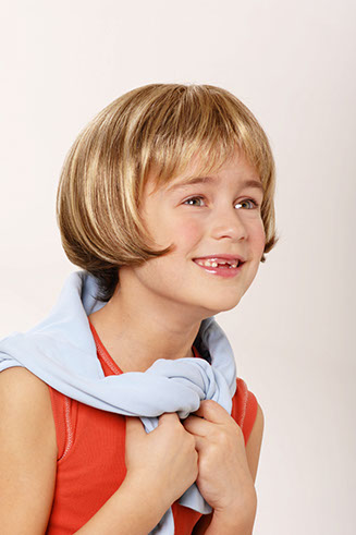 Kinderperücken gibt es in pflegeleichtem SensoHair® (synth.) und in schulterlangem Echthaar.